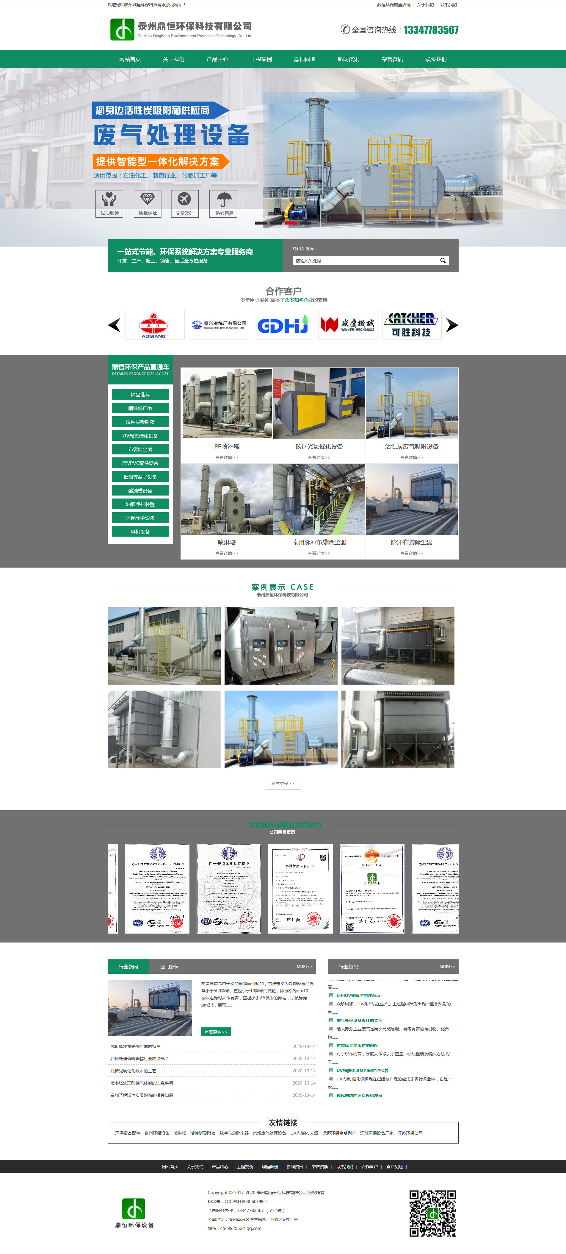 公司擁有一流的技術團隊,專業化服務營銷團隊,專業的工程施工團隊,專業的研發團隊,優質的產品生產基地,為客戶提供一站式服務。經年來,針對國家新的環保法逐步出臺,排污標準的逐步提高,公司不斷加大科技創新力度,通過引進吸收國內外先進技術,研制開發,運用了多項具有領先水平的環保設備技術。如高壓靜電除塵、UV光催化、低溫等離子、UV等離子一體機、水膜除塵器、高效脫硫塔、脫硫除塵器、雙堿法脫硫系統、酸霧凈化、電鍍設備、工業吸塵設備、玻璃鋼風機、化工容器、活性炭吸附設備、廢氣凈化塔、離心機、污泥脫水機、曝氣機、微濾機、氣浮機、臭氧發生器等一大批先進的環保設備系統。