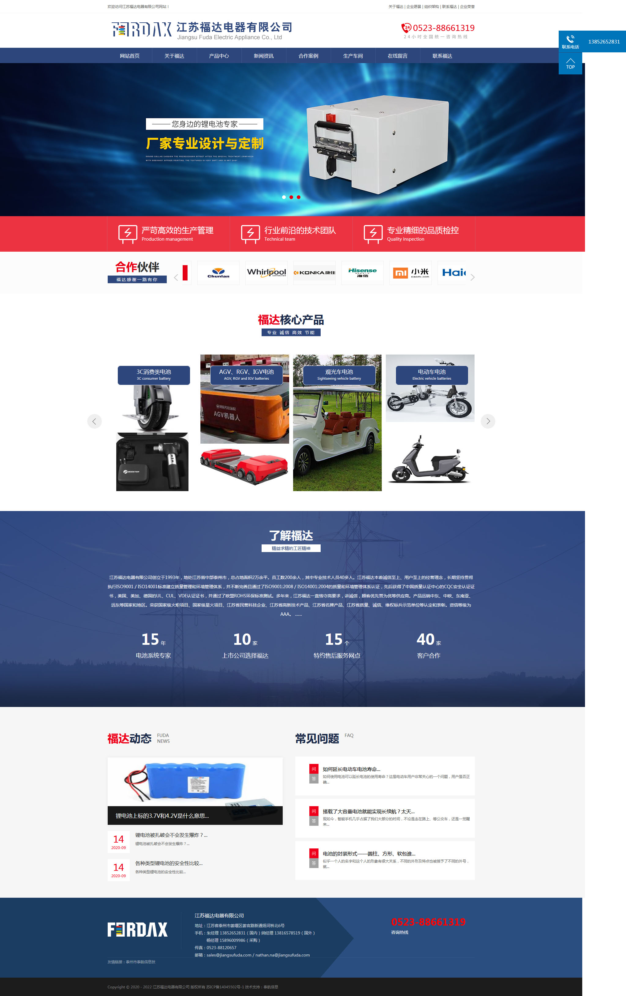 http://www.jiangsufuda.com/index.html】創立于1993年,地處江蘇省中部泰州市,總占地面積2萬余平。員工數200余人,其中專業技術人員40多人。江蘇福達本著“誠信至上、用戶至上”的經營理念,長期堅持貫徹執行ISO9001 / ISO14001標準建立質量管理和環境管理體系,并不斷完善且通過了ISO9001:2008 / ISO14001:2004的質量和環境管理體系認證,先后獲得了中國質量認證中心的CQC安全認證證書,美國、美加、德國的UL、CUL、VDE認證證書,并通過了歐盟ROHS環保標準測試。多年來,江蘇福達一直恪守“高要求,講誠信,顧客優先“譽為優等供應商。產品遠銷中東、中歐、東南亞、遠東等國家和地區。榮獲“國家級火炬項目”、“國家級星火項目”、“江蘇省民營科技企業”、“江蘇省高新技術產品”、“江蘇省名牌產品”、“江蘇省質量、誠信、維權標兵示范單位”等認定和表彰。資信等級為AAA。